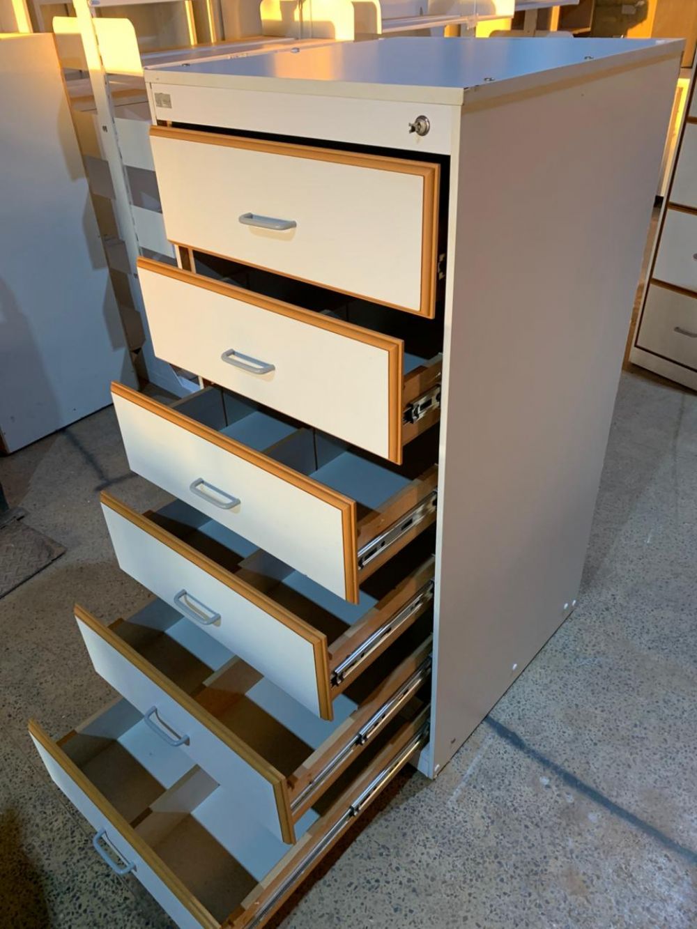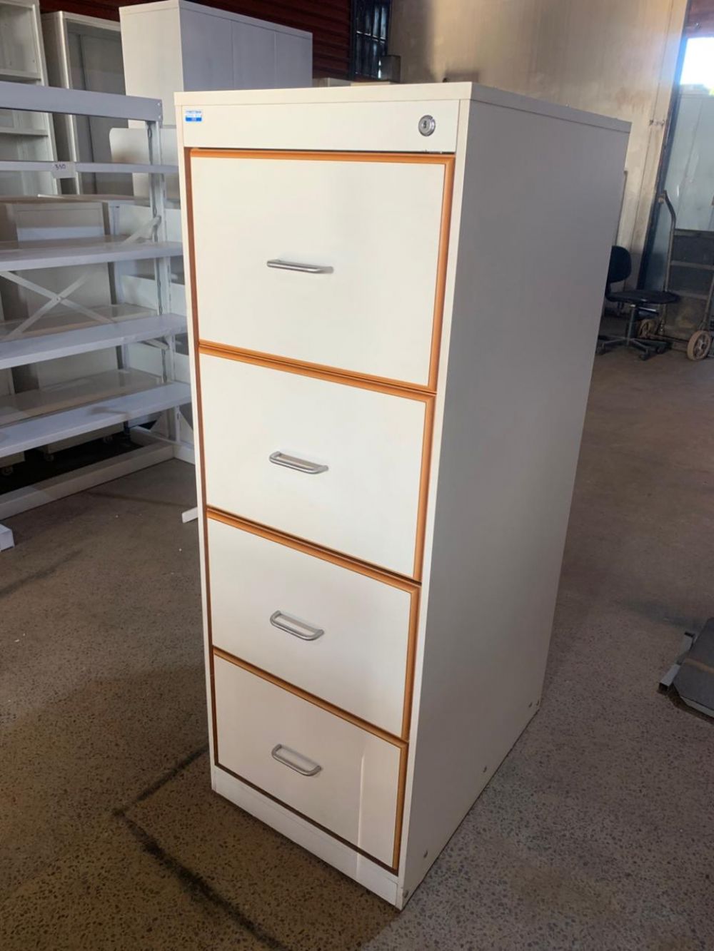 Gaveteiro de aço e madeira com 4 gavetas
