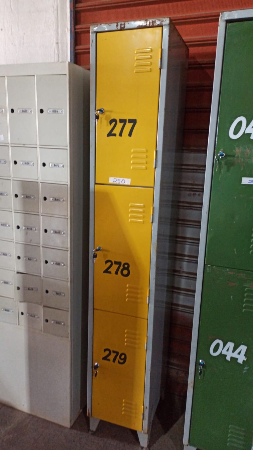 Armário de aço amarelo com 3 portas